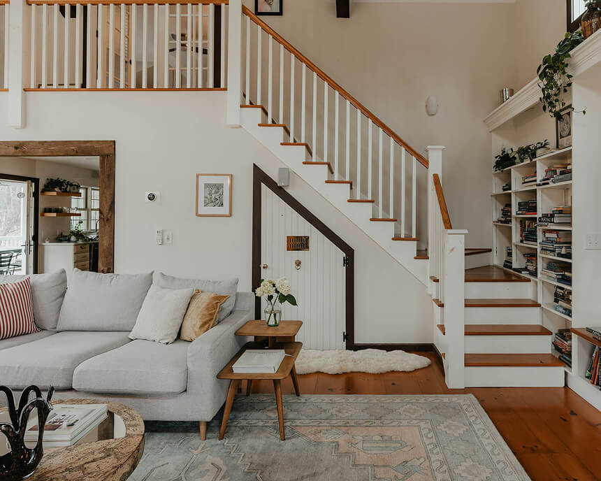 The exterior featured a blend of locally sourced Vermont marble and custom-milled wood cladding. The interior, curated with restraint, let the landscape do most of the talking. Thoughtful lighting, hand-forged fixtures, and soft tactile finishes created an environment that felt both elevated and grounding. Every material used. from the Douglas Fir beams to the Rocky Mountain granite counters, was selected not only for durability, but for how it aged and changed with time. This was a project that required true craftsmanship. We brought in our most trusted artisans and trade partners from across the region. Every line was aligned. Every joint carefully planned. Even the smallest details. the curve of a handrail, the feel of the front door handle were treated as essential parts of the experience.