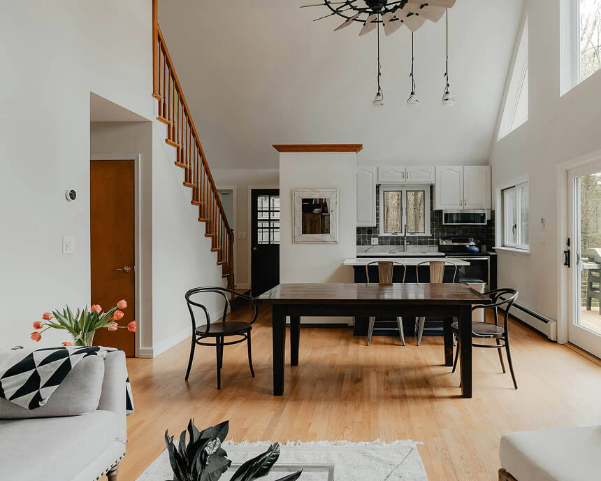 The exterior featured a blend of locally sourced Vermont marble and custom-milled wood cladding. The interior, curated with restraint, let the landscape do most of the talking. Thoughtful lighting, hand-forged fixtures, and soft tactile finishes created an environment that felt both elevated and grounding. Every material used. from the Douglas Fir beams to the Rocky Mountain granite counters, was selected not only for durability, but for how it aged and changed with time.
